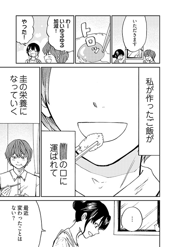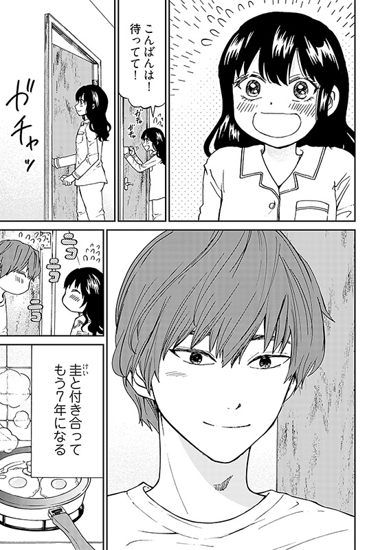 中から鍵をかけた部屋で、朝に「こんばんは」夜に「おはよう」と言葉を掛け合う奇妙な同棲生活をしているみつると圭。ふたりはごくごく普通のカップルだった。しかし半年前、とある事件によって、彼氏の圭の魂が、殺したいほど憎い男の体に乗り移ってしまった。圭とずっと一緒にいたいのに、心の奥底で恐怖を感じてしまうみつる。