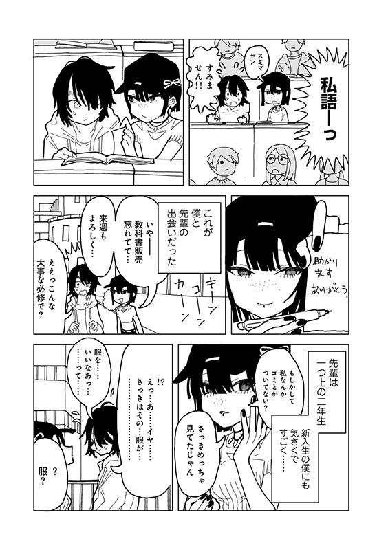 ある日、授業で偶然出会った先輩の女性と話す中で、着ている服を交換することに。