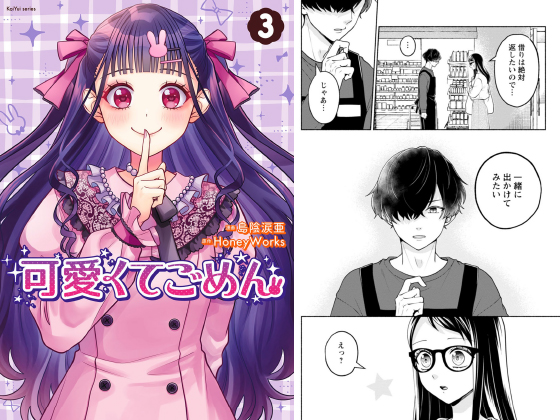 HoneyWorksの大人気楽曲『可愛くてごめん』の”ちゅーたん”の日常を漫画化した第3巻! アイドルユニット『LIP×LIP』の愛蔵が大好きで推し活のためのメイド喫茶でバイトしている中村千鶴=ちゅーたん。実は愛蔵はクラスメイトでこれはもう運命! でも学校はプライベートだから私はこっそり見守っているのに彼らに接近する女子生徒が現れて…嵐の予感!?