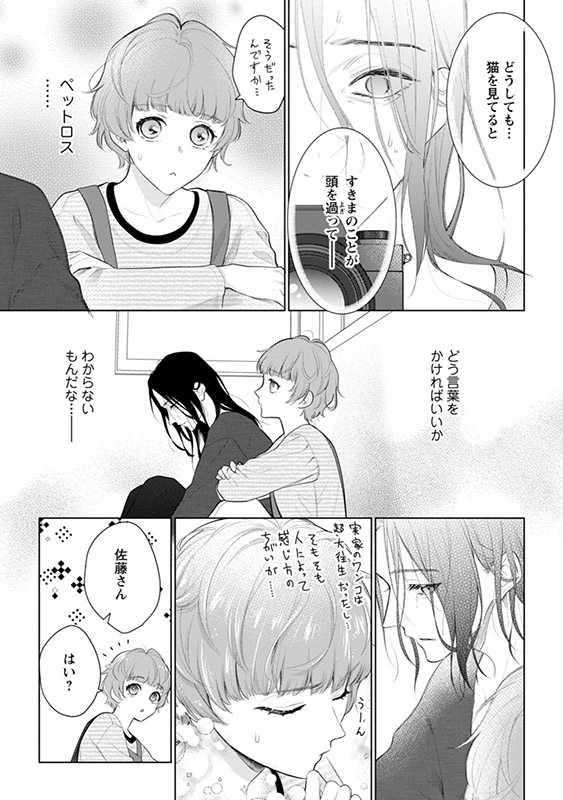 男は由良と名乗り、亜莉の髪色が最近亡くした愛猫にそっくりで思わず…と話す。ひどく落ち込んでいる由良だったが、亜莉の髪を撫でると心が落ち着くようで…。