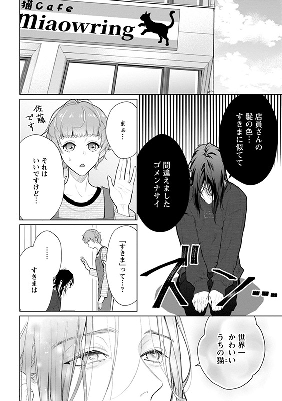 保護猫カフェで働く亜莉はいつか動物園で飼育員になるという夢を抱いている女のコ。そんな亜莉はバイト先の猫カフェで涙を流す長身長髪の美しい男に目を奪われた――瞬間、男が亜莉に飛びついてきた。
