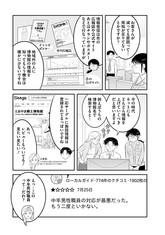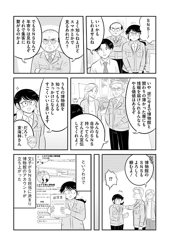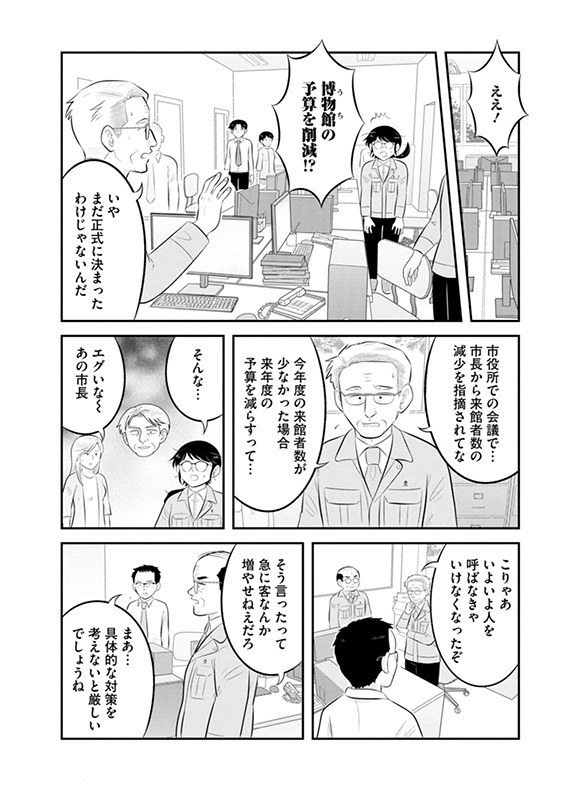 第2巻では、集客を増やそうと奮闘する博物館の人々、そしてそれぞれが抱える家庭の問題が描かれる。