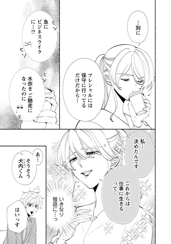 そんな中、職場の打ち上げで酔いつぶれた樹里は、後輩の俺様男子・青山慧と酔った勢いで肌を重ねてしまう。女遊びが激しく生意気な慧とはぶつかり合っていたはずなのに、はじめての快感が忘れられなくて……。
