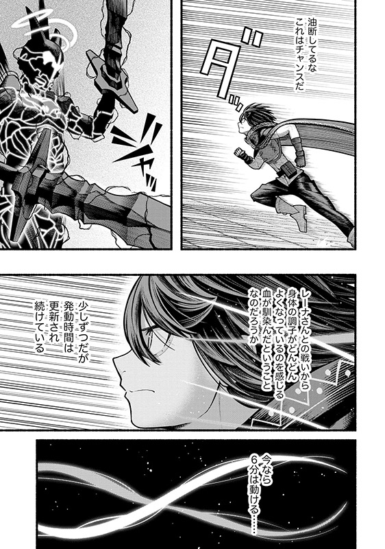 竜の力を身につけたディオンが、ついに本気の竜魔力強化を発動! ユキパーティ全滅の危機をディオンが救出し、決戦の一騎打ちが幕を開ける! 持てる手を全力で繰り出すディオンと、ランク測定不能門番の超絶死闘に、その場の冒険者たちは驚愕するのみだった。 ただ一人、笑みを浮かべている者を除いて――。