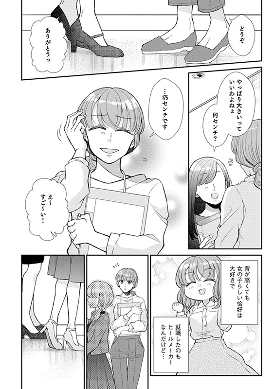 ヒールメーカーに勤める沙也香は、元カレに背が高いことを理由にフラれてから大好きなヒールを履くことを躊躇してしまうようになっていた。