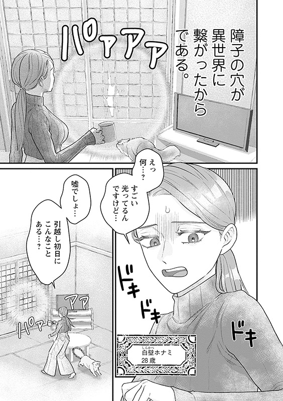 アラサー無職となった白壁ホナミ。「貯金もあるし」とゆるゆる暮らしていたら、猫が開けた障子の穴が光り出し、祈りの声が…。困ってるようなのでスマホでググって解決方法を読み上げると、感謝され奉られ神様扱い!さらに邪教とみなされ、”血の髭卿”辺境伯シャ―ル・フリヤに目を付けられて!?