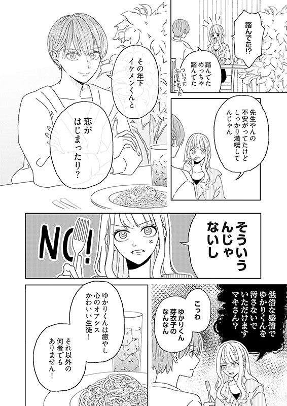 週に1度、専門学校の講師として働くことになった芽衣子。慣れない授業をなんとかがんばれるのは、マジメな生徒・ゆかりくんがいるから。ゆかりくんは癒やし! 心のオアシス、かわいい生徒! だけど、学校外のゆかりくんは意外な一面を持っていて…!?