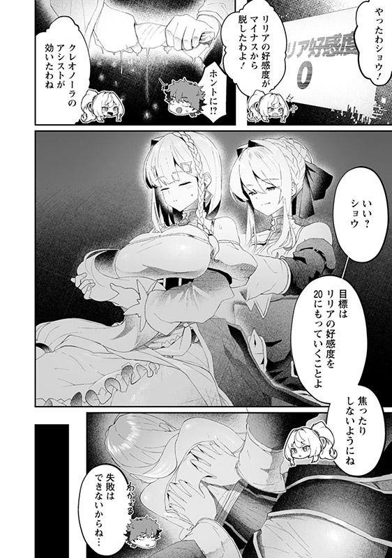 リリアレットとも契約し、姫姉妹の魔法少女化に無事“性交”したショウ。夜の営みへの妄想が捗りまくりな一方、その妄想を叶えるためには資源ポイント不足というジレンマに陥ってしまう! ショウはその問題を解決するため、ポイントを稼ごうと再度日本に帰還するのだが…。