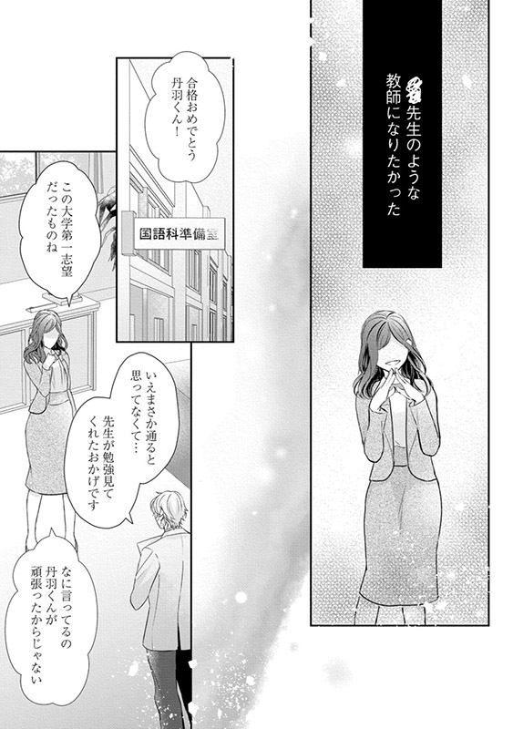 そんな自分とは打って変わって、器用で生徒にも職員にも人気な、同僚の国語教師・丹羽 春臣(にわ はるおみ)とは犬猿の仲だが…