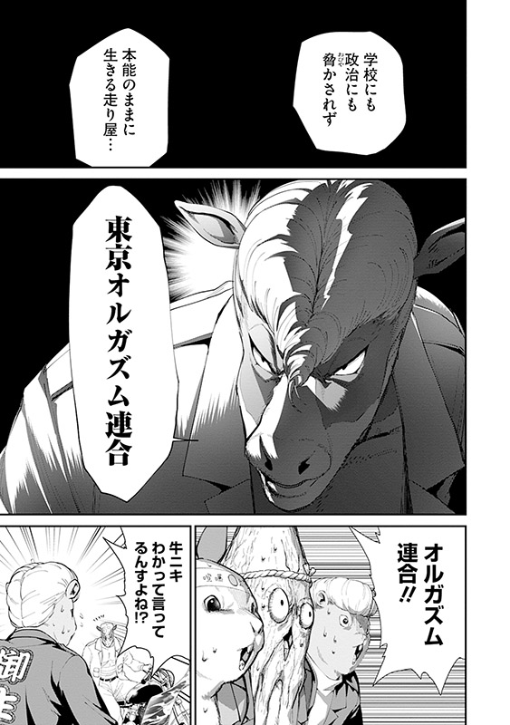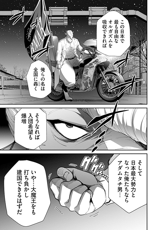 父・神城は家庭を持ち、大魔王の座を狙う野心を捨ててしまった。そんな腑抜けたオヤジに愛想を尽かした牛若丸は、自らの王国を築くべく立ち上がる。その志はやがて熱を帯び、仲間と共に周辺組織を傘下に収め、快進撃を続ける牛若丸。だが彼の前に立ちはだかったのは、東京魔王アダムタチオの息子にして「東京オ○ガズム連合」総長・馬王丸。