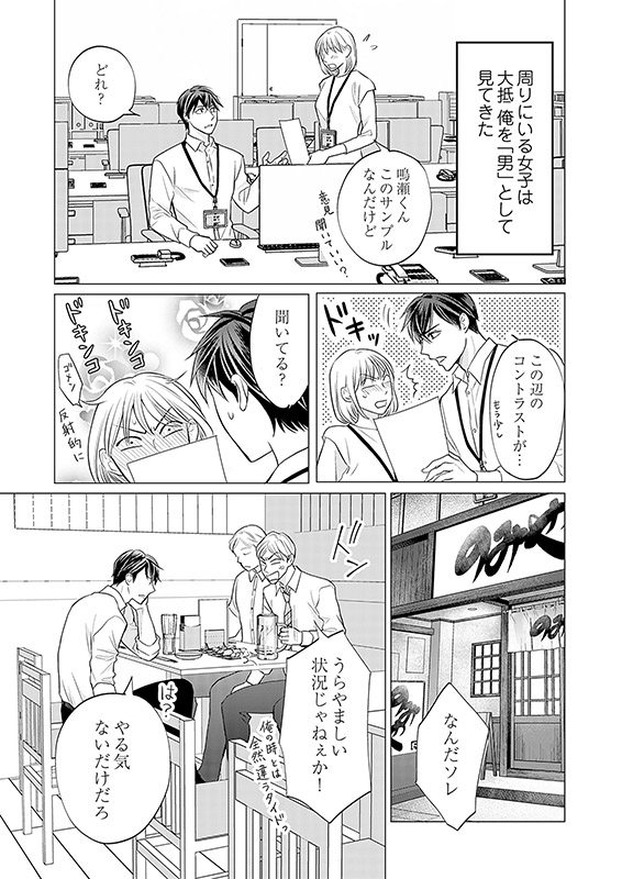 同期の鳴瀬仁だ。イケメン故に会社の女子からは注目のマトなこのオトコ、乙葉には何かと絡んできて、必ず言い合いになる関係なのだ。