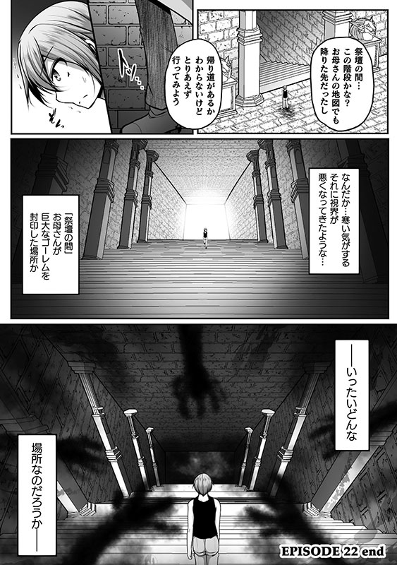 遺跡調査の任務中にパーティからはぐれたウェインは、 行く手を阻むゴーレム三姉妹を退け最奥部の大部屋へと到達する。 そこでアイシャ、エドナ、さらにはフィーナと合流を果たすも、 待ち受けていた超巨大ゴーレムと対峙することに…! 傷つき倒れる仲間たちを前に、 元ゲーマーは決断の時を迫られる! 波乱に満ちた遺跡探索編、ついに終幕!!
