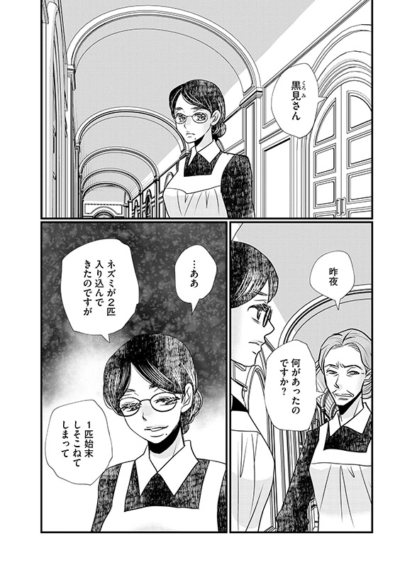 続くトラブルに身の危険を察知した黒見は、犬山とまほを連れ屋敷を出ようとするも、警備システムの異常を装い訪問してきた刺客たちと対峙。