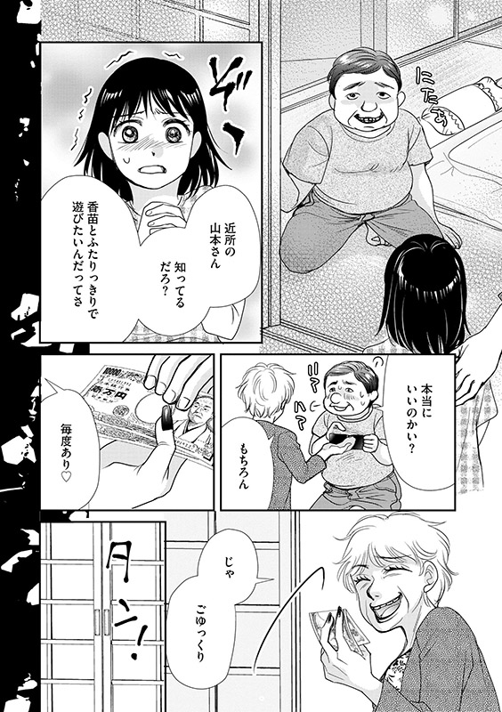 両親を亡くした香苗は祖母・明美に引き取られ、明美に食い物にされて少女時代を過ごした。